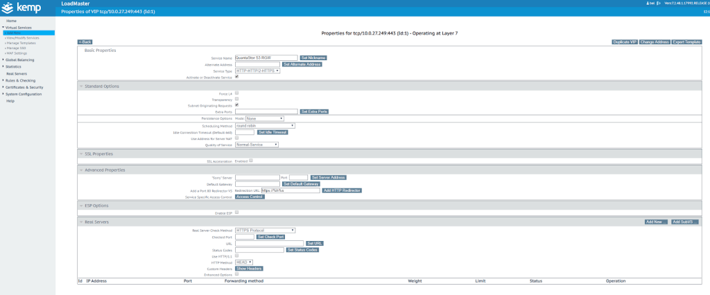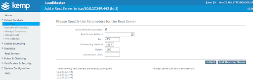 - Real Servers – These are real servers that LoadMaster uses to handle requests. The virtual service requires real servers to function correctly