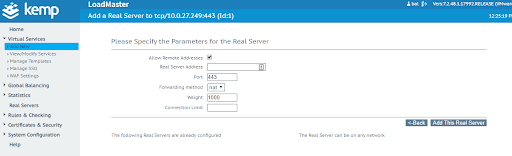 Step 6) Specify details for real servers and click ‘Add This Real Server’. Repeat until all servers are added. Click ‘Back’ when done. You’ll then see them appear in the ‘Real Servers’ section.