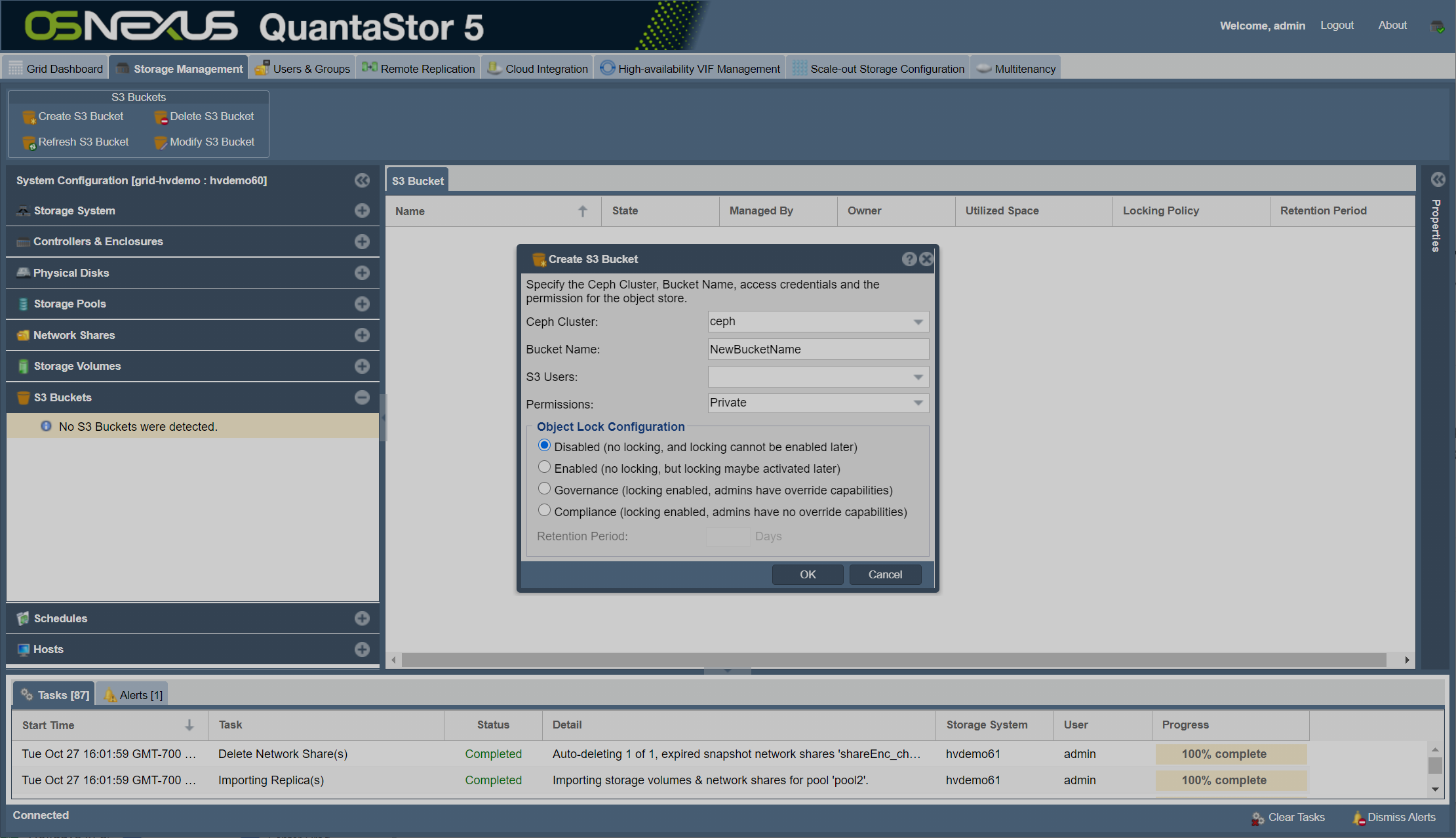 QuantaStor’s S3 object storage clusters now support Object Locking for use cases like Data Governance and Compliance policy enforcement. These features are especially important for organizations required to meet data retention standards and data immutability requirements for FINRA, HIPAA, and other industry-specific security compliance standards.