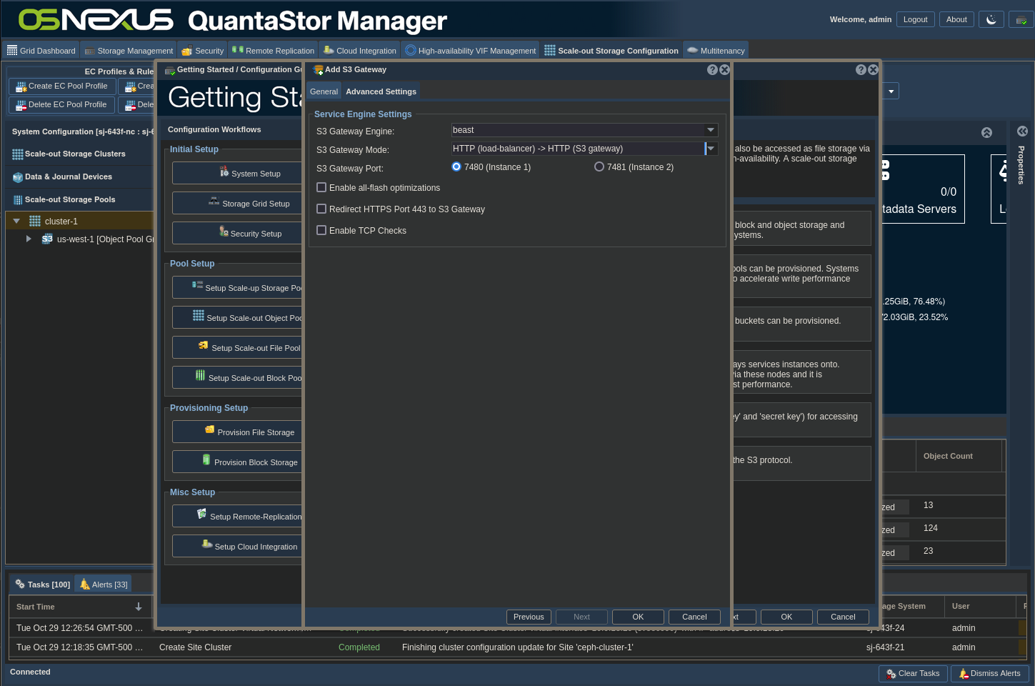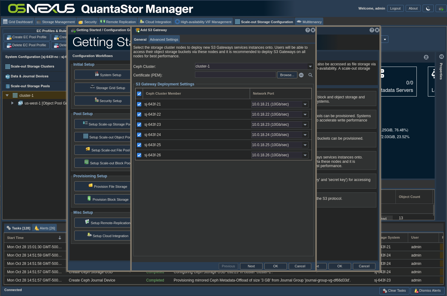 ACTION: Go back to the Getting Started dialog, click Setup Storage Pool – Scale-out Object and then click Add S3 Gateway