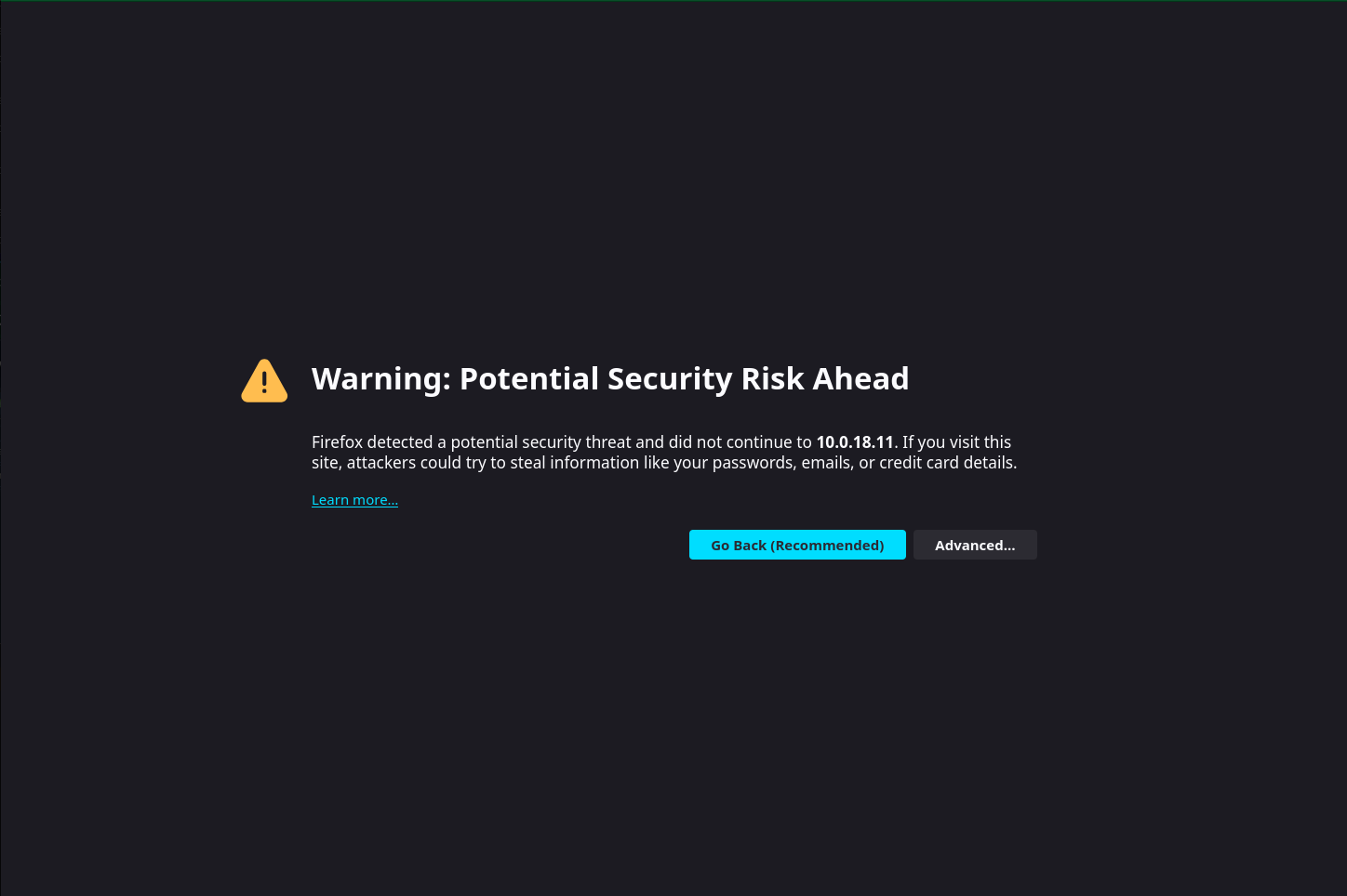 It uses a self-signed certificate, so you’ll need to bypass the warning. You use the database account to login which was created during the install process and can also be found in the Nextcloud config.php file. Make sure you actually type in “localhost” for the Server field (the hint looks like it’s a default value, but it’s not).
