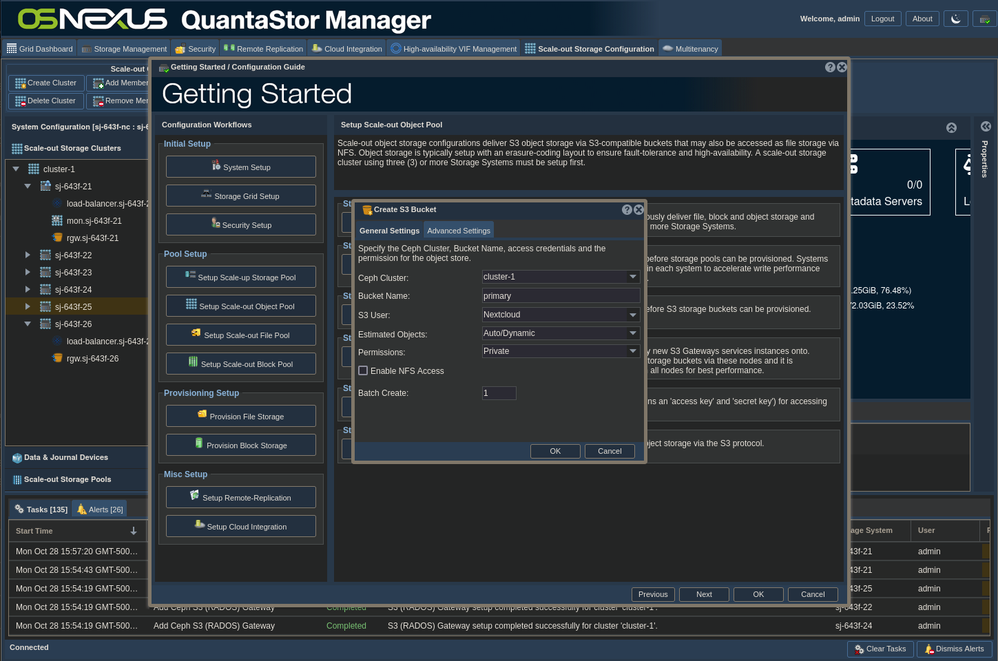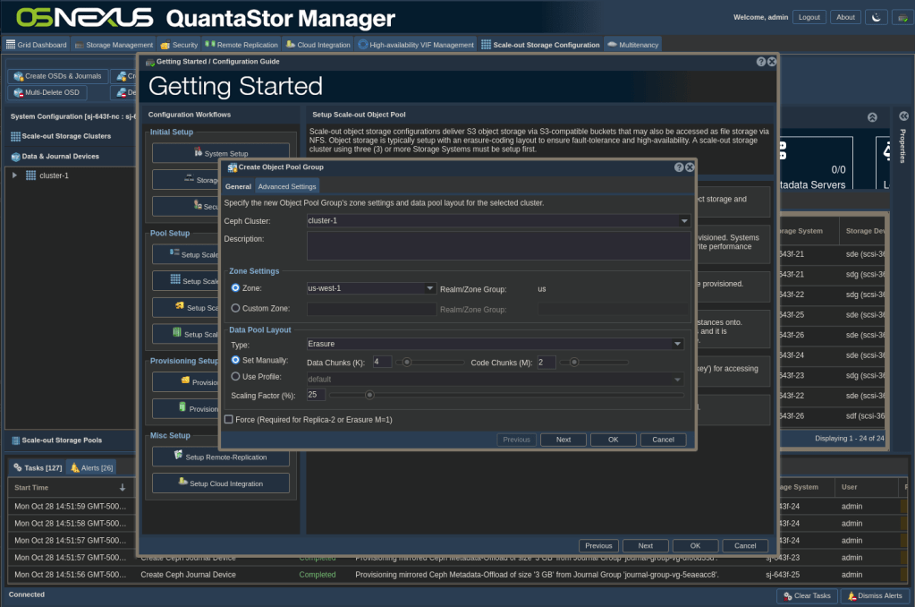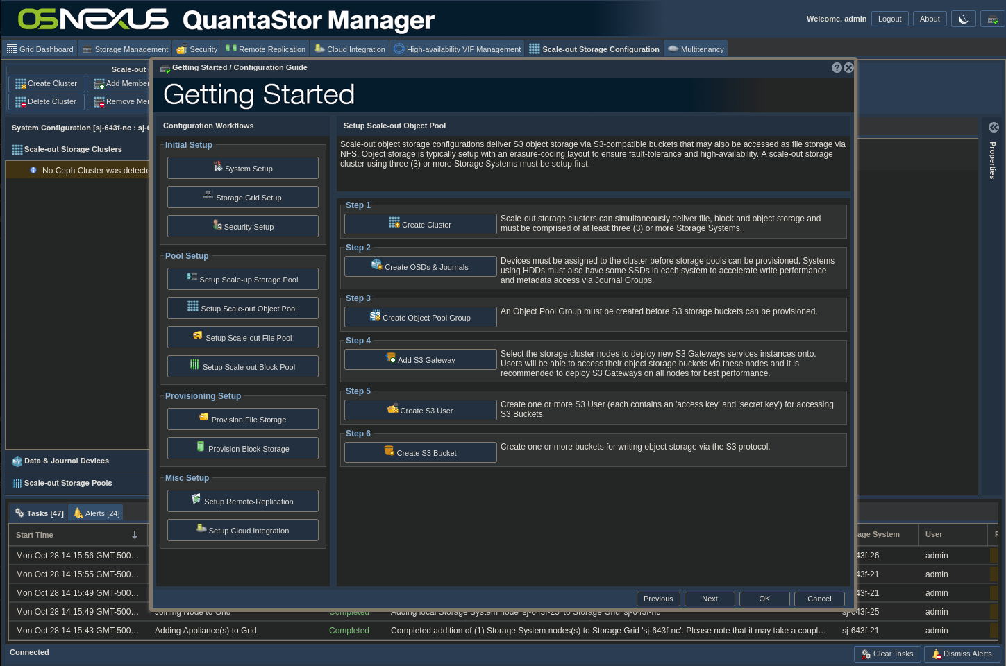 ACTION: In the Getting Started dialog, click Setup Storage Pool – Scale-out Object