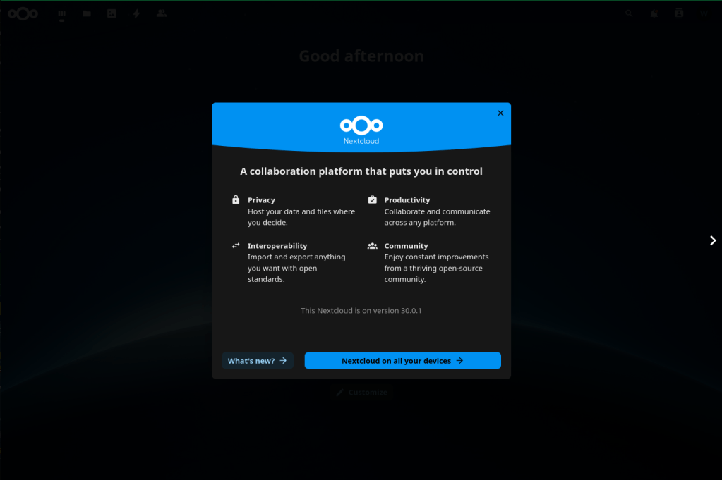 “… an open-source, self-hosted cloud storage solution that provides users with control over their data, security, and customization options. It offers a range of features, including file sharing, synchronization, and collaborative editing, making it a viable alternative to commercial cloud storage services.”