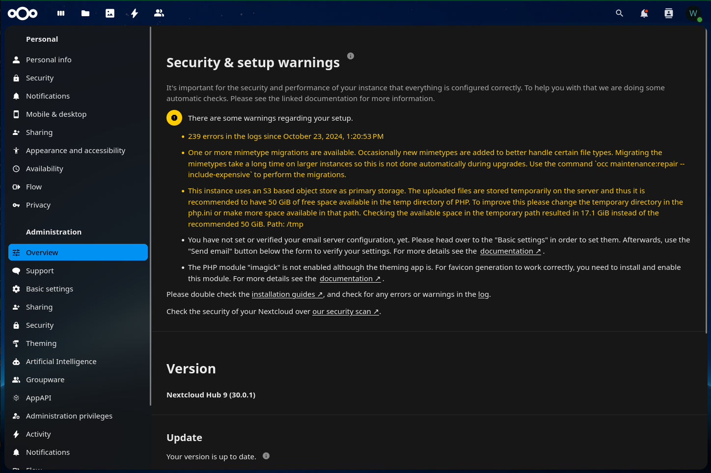 Nextcloud 30.0.1 – Single VM running Ubuntu 24.04 (minimized):
