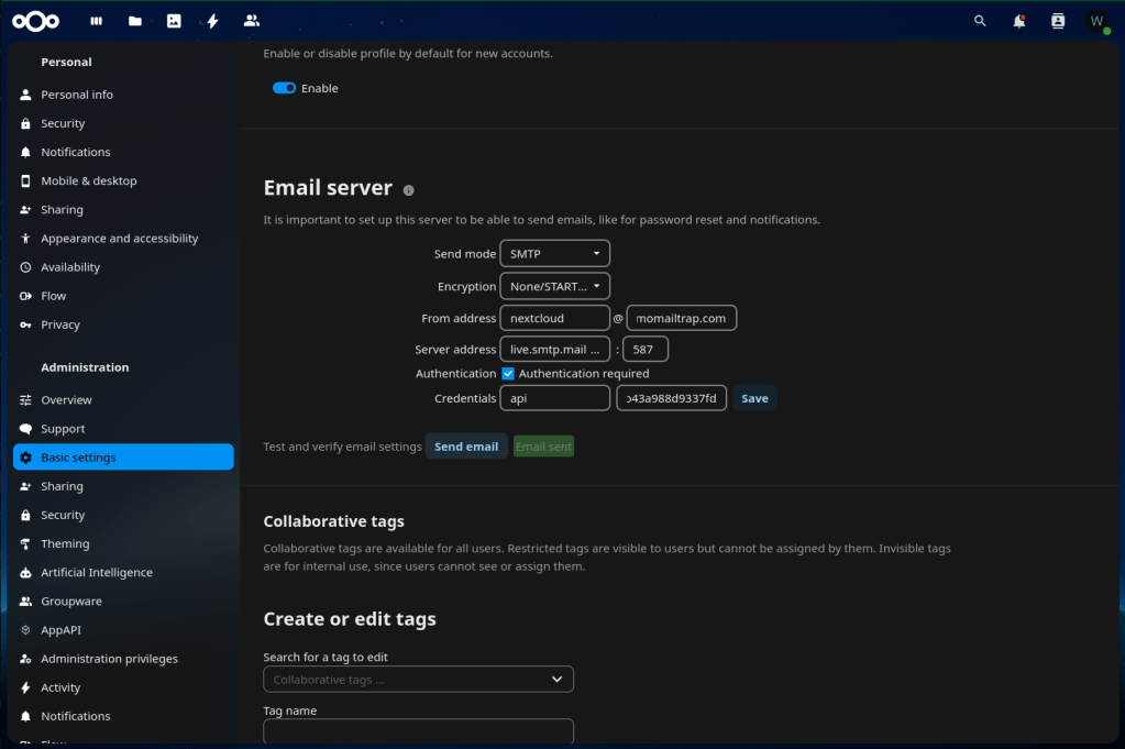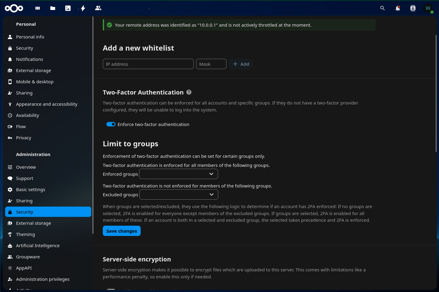 - Traffic between Nextcloud and QuantaStor will NOT be encrypted.