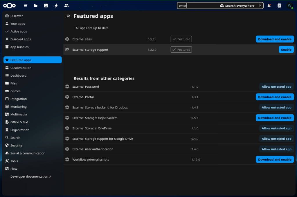 - Configuration of Nextcloud external storage using QS Scale-out Storage