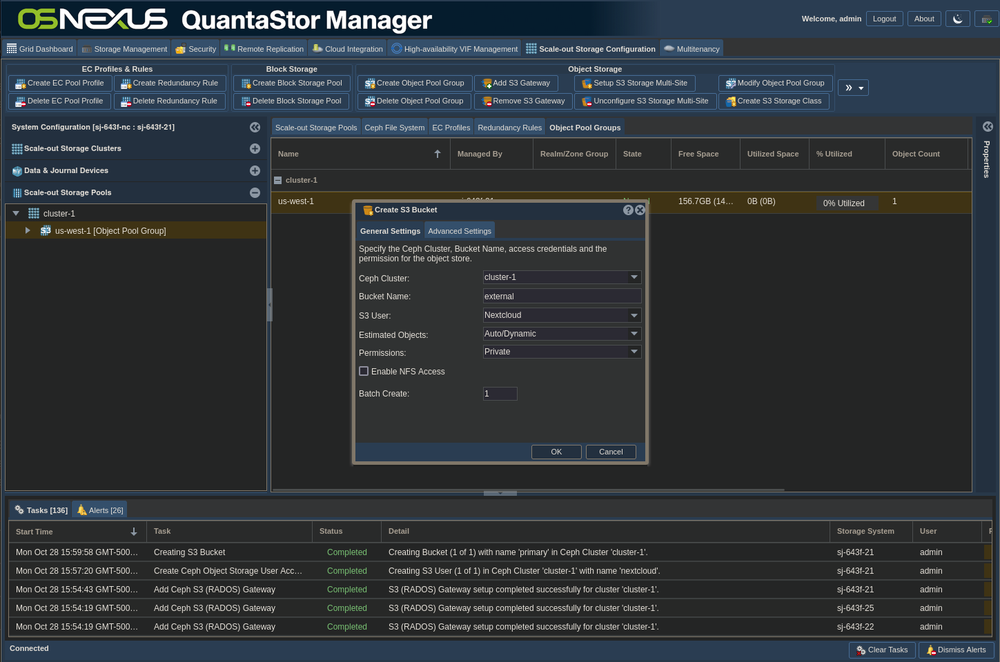 In this article I’m going to go through the process of installing Nextcloud in a single virtual machine using OSNexus QuantaStor (QS) Scale-out Object Storage as both Nextcloud primary storage and external storage. I will be covering the following: