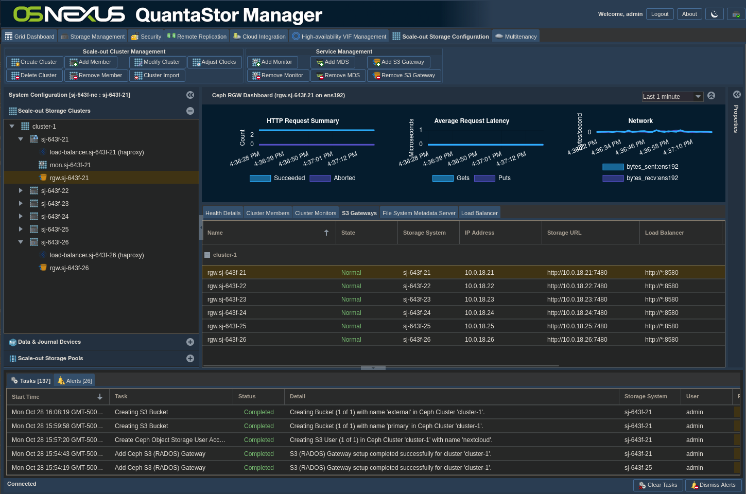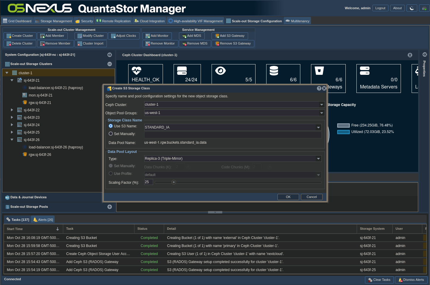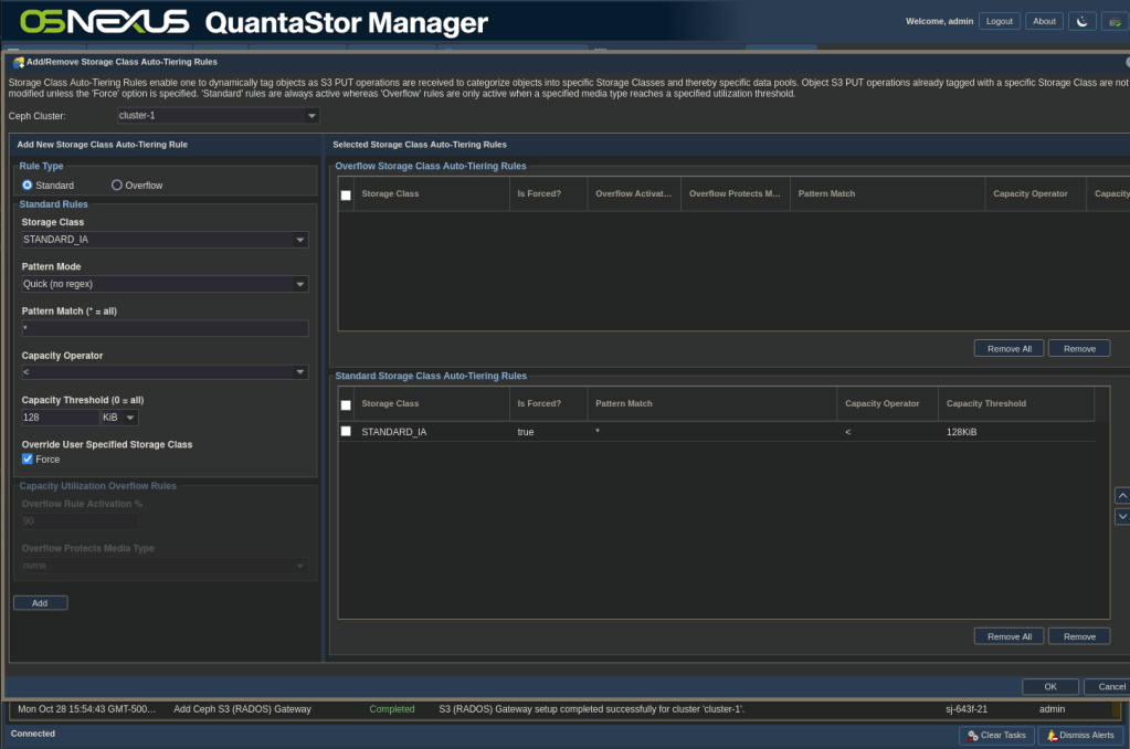 an Enterprise-grade Software Defined Storage platform that turns standard servers into multi-protocol, scale-out storage appliances and delivers file, block, and object storage. OSNexus has made managing enterprise-grade, performant scale-out storage (Ceph-based) extremely simple in QuantaStor, and able to be done in a matter of minutes. The differentiating Storage Grid technology makes storage management a breeze and for scale-out we’ve added storage class tiering capabilities that will position content into a specific storage class based on criteria (rules) that you set. Because you’re not paying differently for storage classes with QS like you do in AWS, it’s not quite the same as S3 Intelligent-Tiering. It’s more about proper resource utilization.