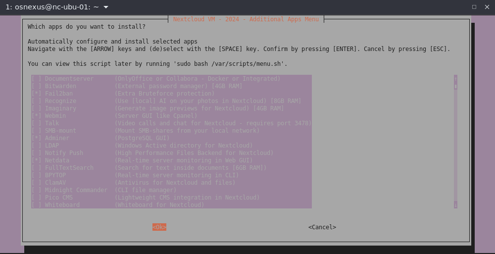 During our install we had the Nextcloud installer add a few additional tools to the system.