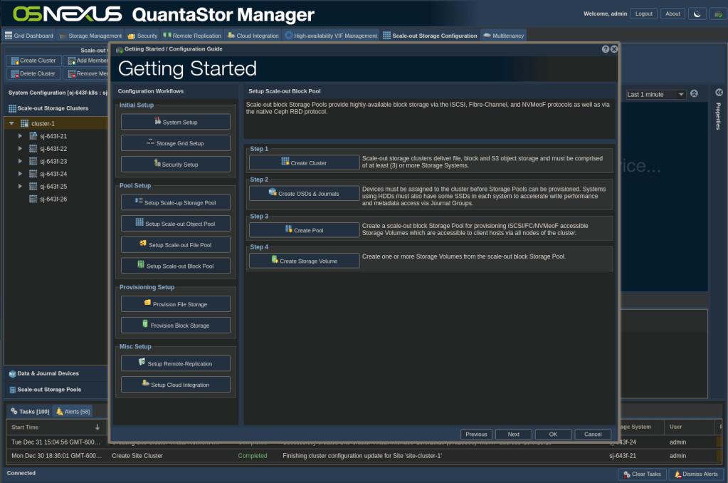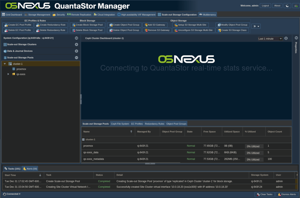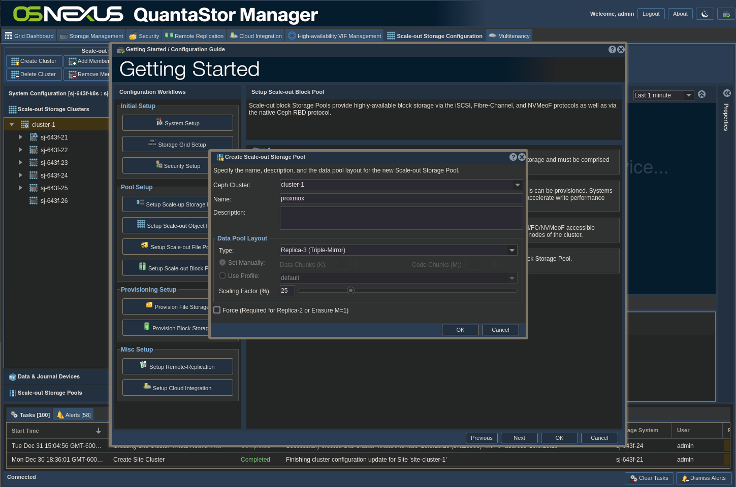 an enterprise-grade Software Defined Storage platform that turns standard servers into multi-protocol, scale-out storage appliances and delivers file, block, and object storage. OSNexus has made managing enterprise-grade, performant scale-out storage (Ceph-based) extremely simple in QuantaStor, and able to be done in a matter of minutes. The differentiating Storage Grid technology makes storage management a breeze. For the purposes of this exercise we’ll be using QuantaStor’s Scale-out File Storage for file-level Proxmox storage pools (NFS and CephFS) as well as Scale-out Block Storage for block-level Proxmox storage pools (RBD).