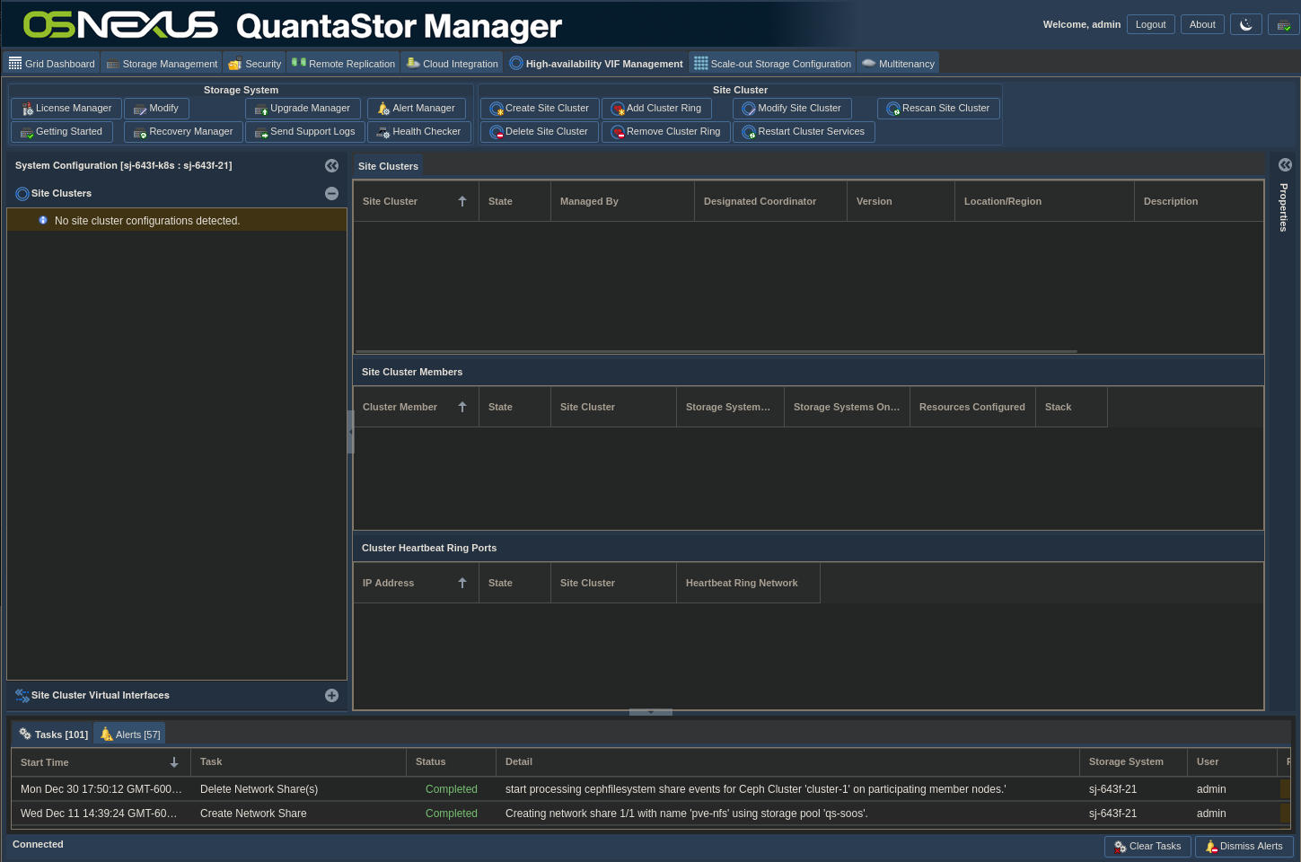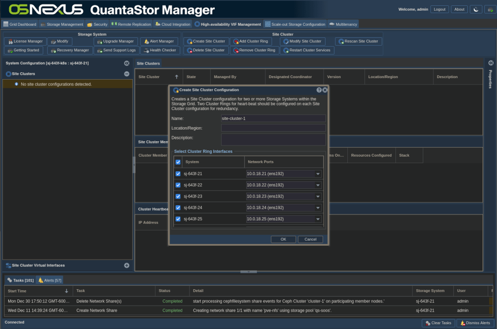 ACTION: Click the Create Site Cluster button just below the High-availability VIF Management Context Tab. Select all of the nodes and click OK.