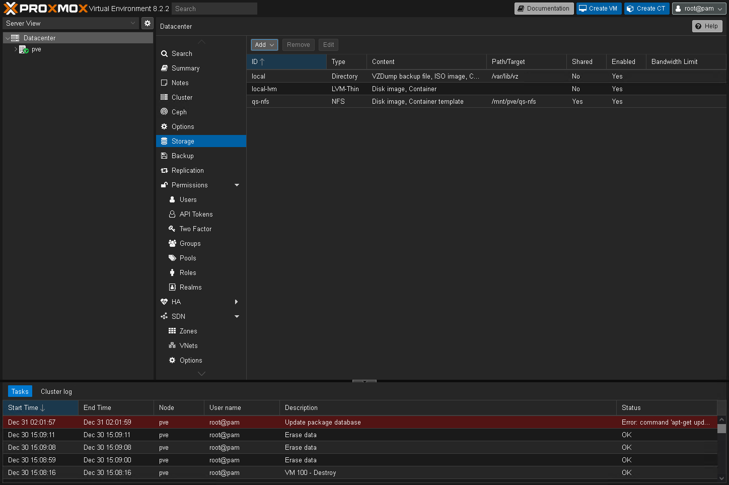 That’s all we need to do on the storage side. Now we can move on to using the new pool in Proxmox.