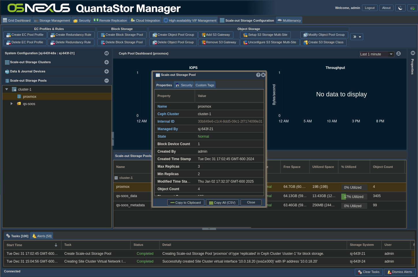 - This is the Internal ID we looked up in the QuantaStor interface, prefixed by “qs-” and the value we found at the command line with the “ceph osd pool ls” command.
