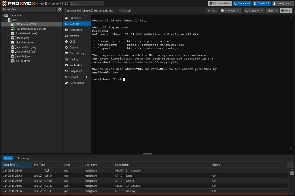- Created a container using the RBD (replica) pool storage with a template from the CephFS pool
