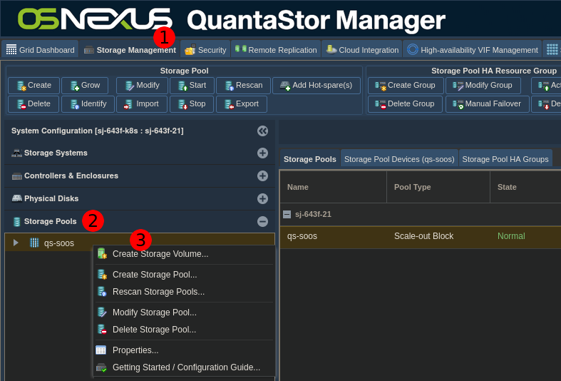 - Determine the pool ID for the QuantaStor Scale-Up Block Storage pool