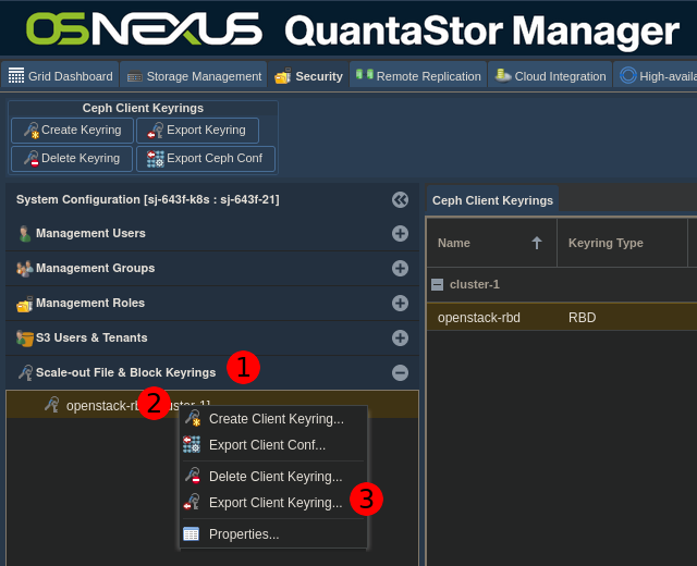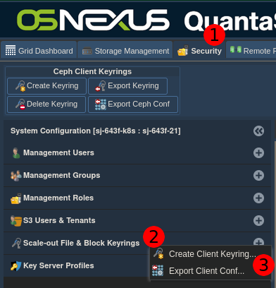 # Security -> Scale-out File & Block Keyrings ->