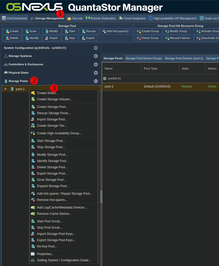 # Storage Management -> Storage Pools ->