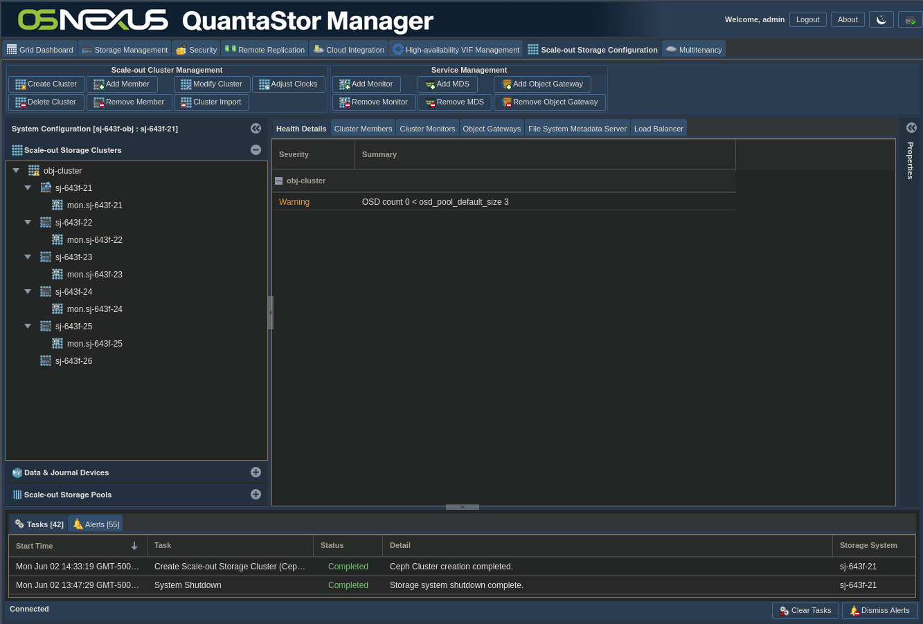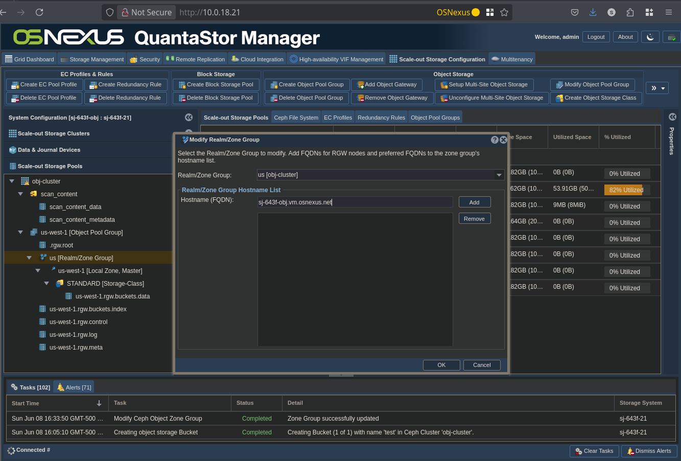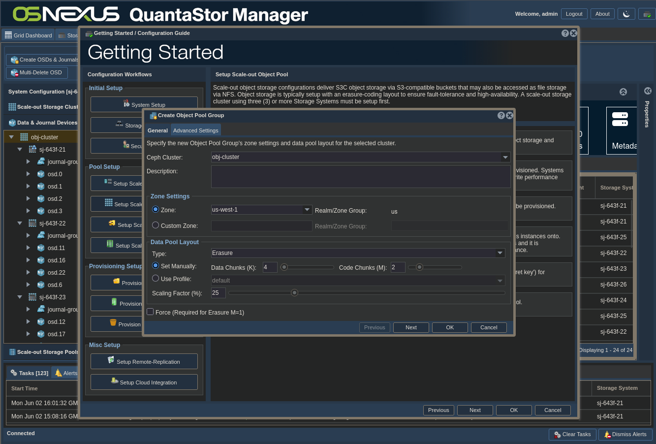 … an enterprise-grade Software Defined Storage platform that turns standard servers into multi-protocol, scale-out storage appliances and delivers file, block, and object storage. OSNexus has made managing enterprise-grade, performant scale-out storage (Ceph-based) and scale-up storage (ZFS-based) extremely simple in QuantaStor, and able to be done quickly from anywhere. The differentiating Storage Grid technology makes storage management a breeze.