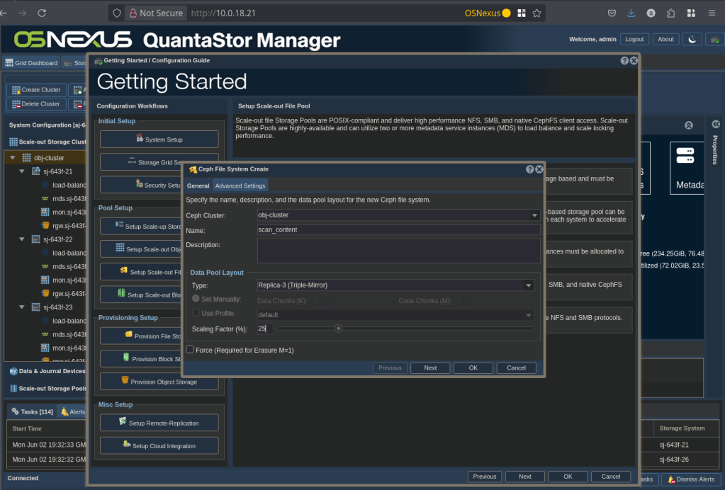NOTE: You’ll find that the steps above are common to the Scale-Out Object Pool section and the Scale-Out File Pool section of the Getting Started dialog. They only need to be completed once. Both sections build on the same foundation past this point.