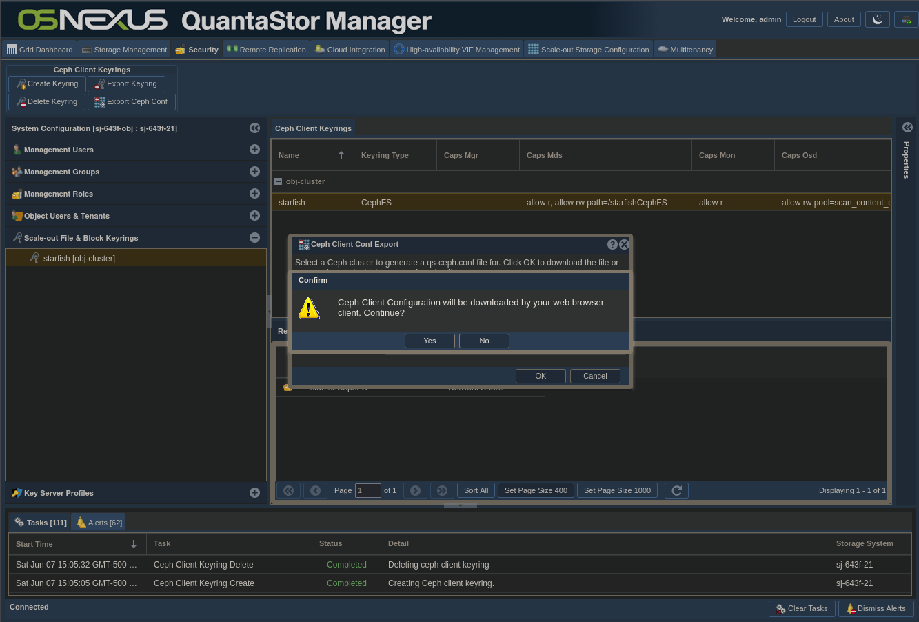 - In the Confirm dialog click Yes to download the ceph.conf file