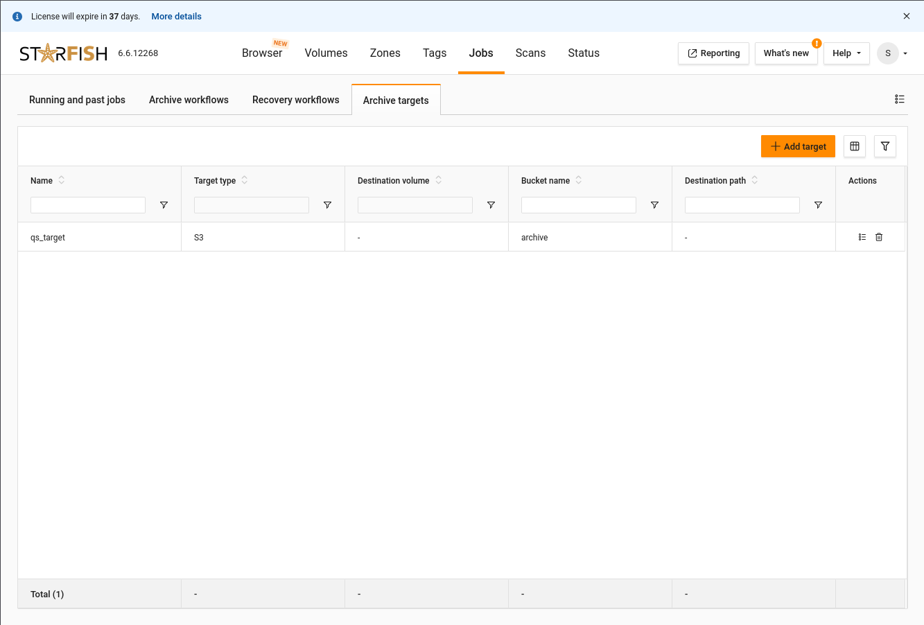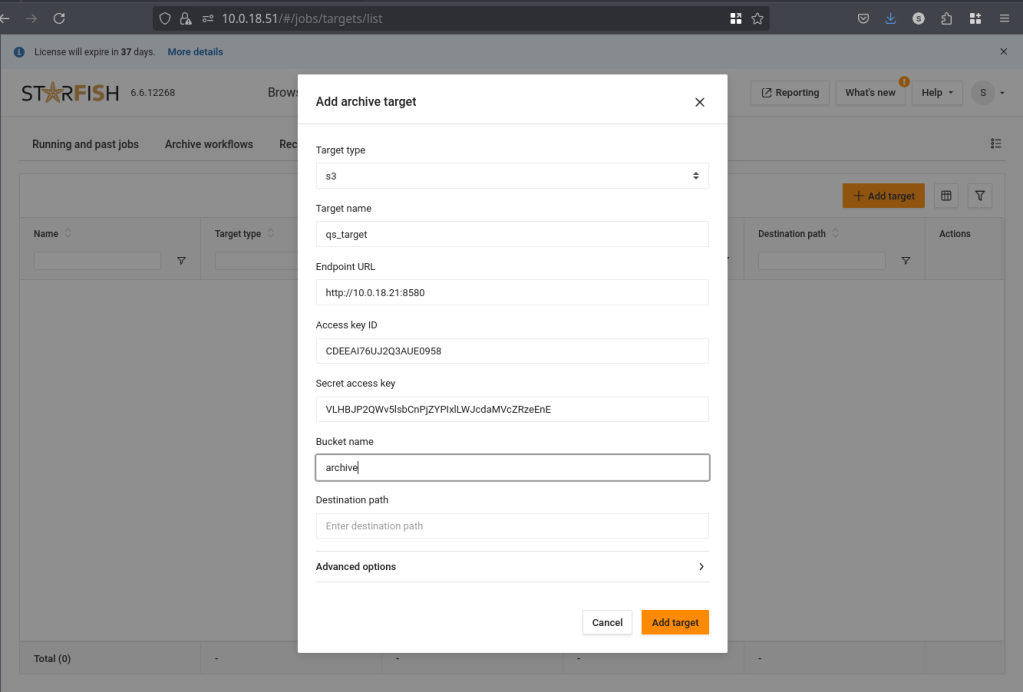 Now we’ll complete the last item on our list, to configure Starfish to use the Scale-Out Object Storage we configured as an Archive Target.