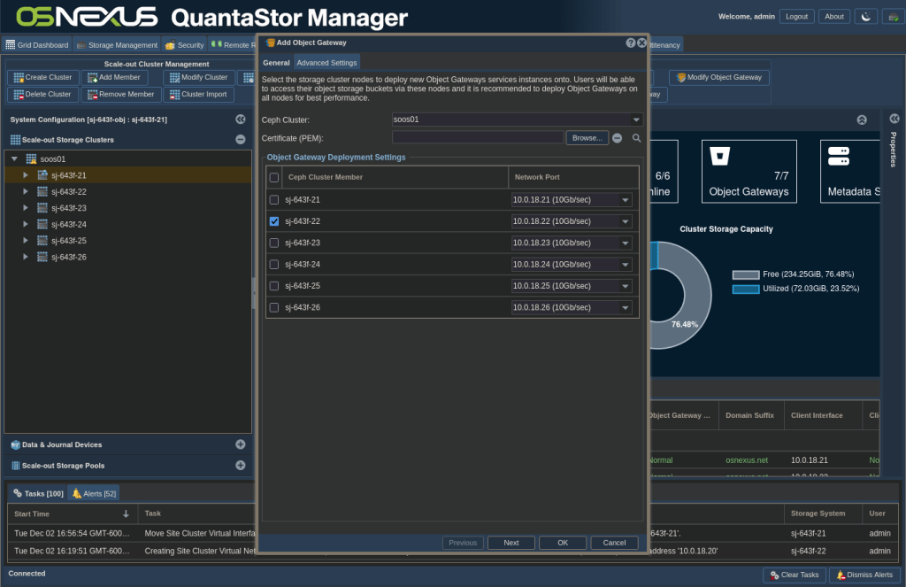 The second way, in the GUI is to go to the Scale-out Storage Configuration tab, right-click the node you chose and select Add Object Gateway…