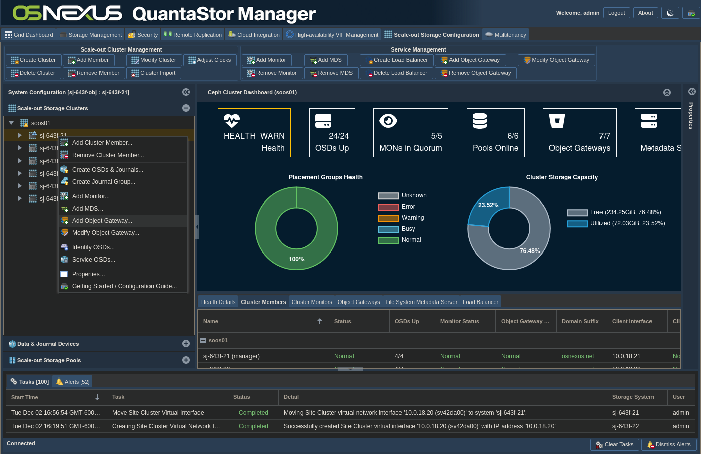 The second way, in the GUI is to go to the Scale-out Storage Configuration tab, right-click the node you chose and select Add Object Gateway…