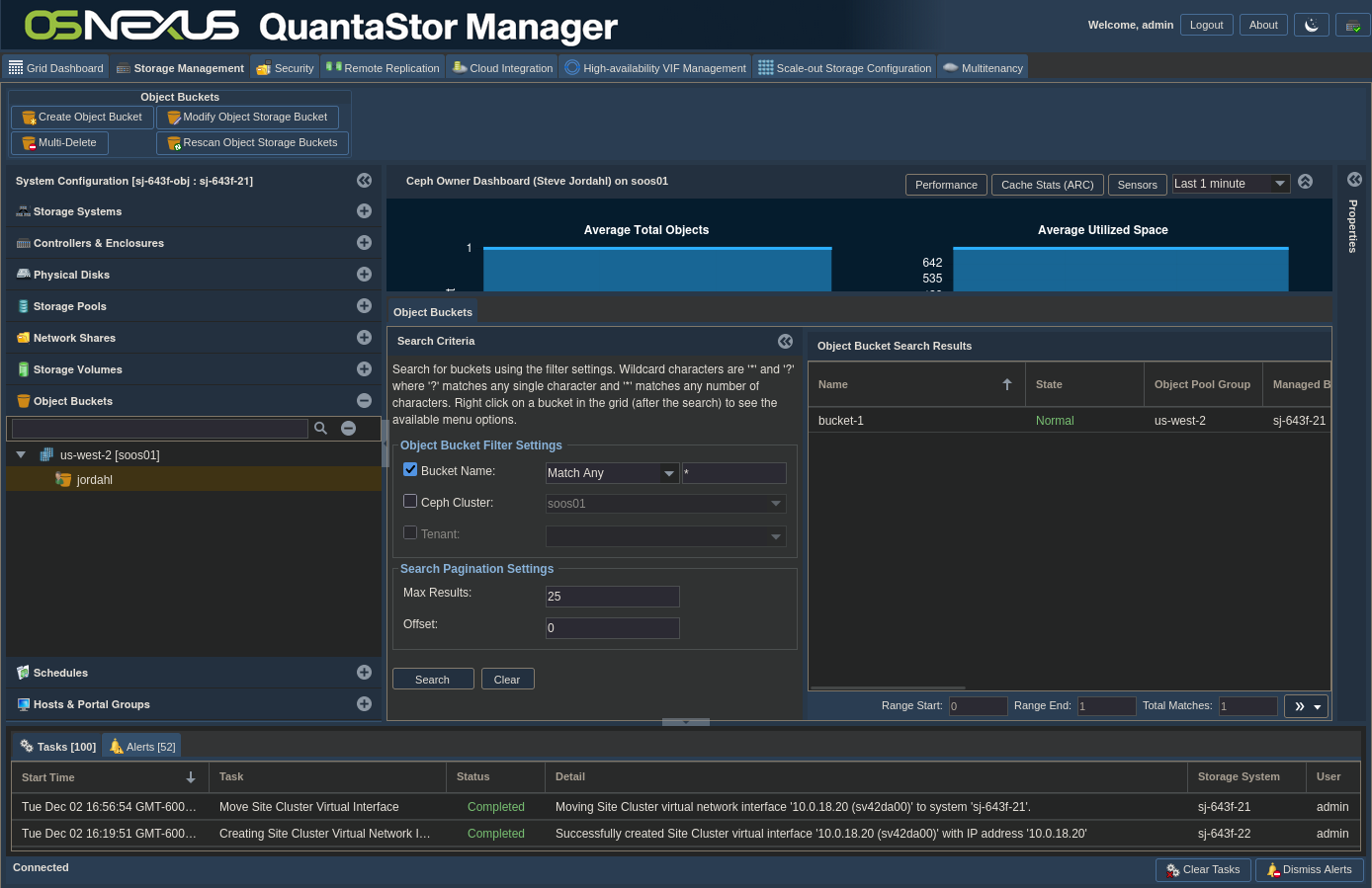… an enterprise-grade Software Defined Storage platform that turns standard servers into multi-protocol, scale-out storage appliances and delivers file, block, and object storage. OSNexus has made managing enterprise-grade, performant scale-out storage (Ceph-based) and scale-up storage (ZFS-based) extremely simple in QuantaStor, and able to be done quickly from anywhere. The differentiating Storage Grid technology makes storage management a breeze.